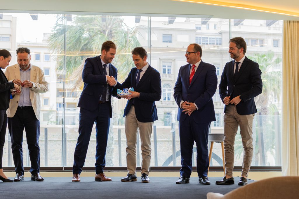 A continuación, se ha hecho entrega de los Premios ACRE con motivo de su aniversario. El Premio ACREAMIGO ha recaído en D. Juan Isidro Ros Espín, Socio Fundador de ACRE AMBIENTAL y le ha hecho entrega del mismo Dª Cristina Mora Menéndez de la Vega, tercera Teniente Alcalde del Excmo. Ayuntamiento de Cartagena.